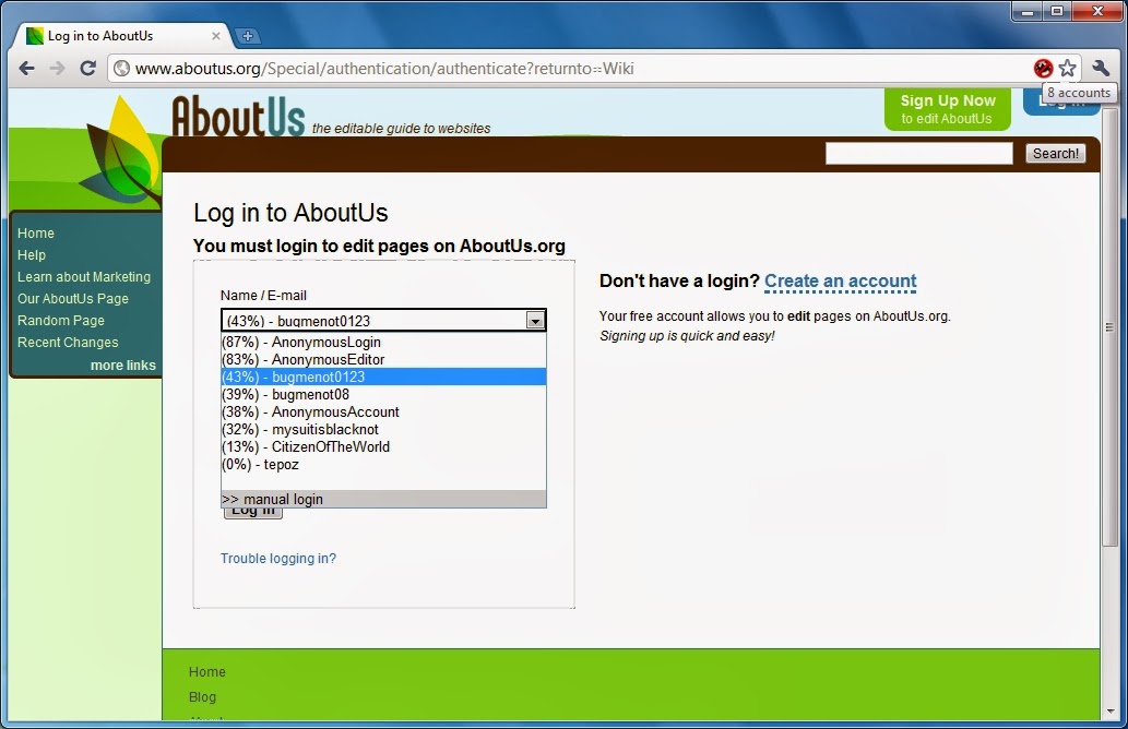 BugMeNot Lite: proporciona nombres de usuario y contraseñas para que los usuarios puedan entrar en una página sin registrarse obligatoriamente, es decir, para que puedan entrar libremente.