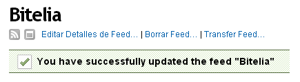 - Volvemos a la sección Mis feeds y accedemos al feed de Bitelia que acabamos de crear.