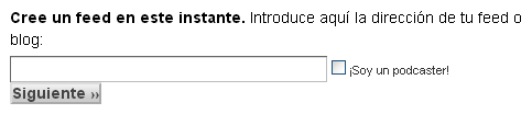 - Volvemos a la sección Mis feeds e introducimos la dirección de nuestro feed o blog como ilustra la siguiente imagen: